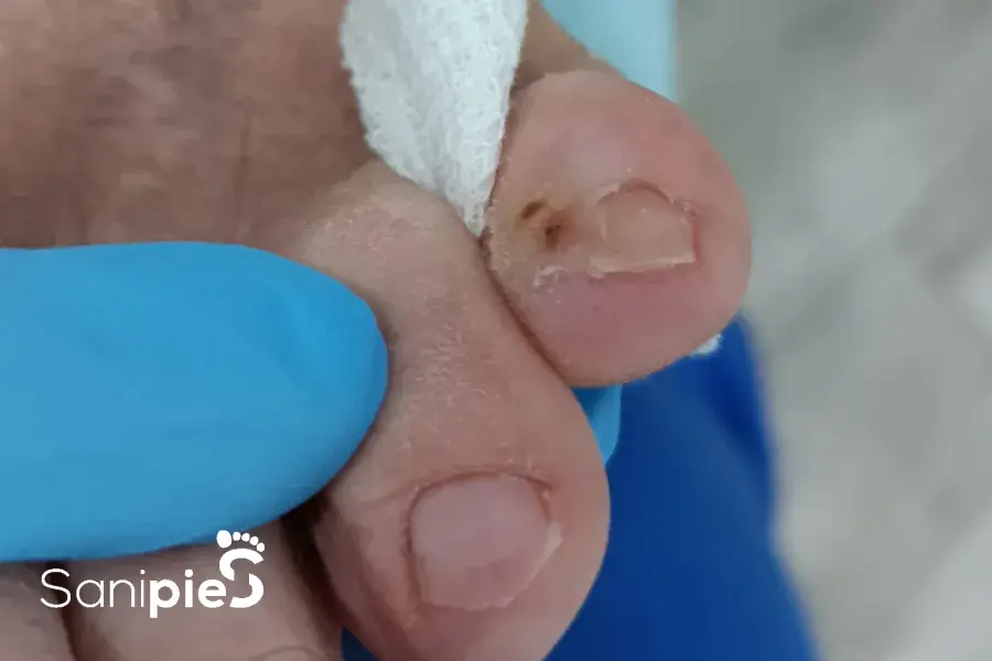 Tratamiento en un paciente infantil con onicocriptosis recurrente que mejoró su vida al eliminar la espícula y prevenir infecciones futuras.