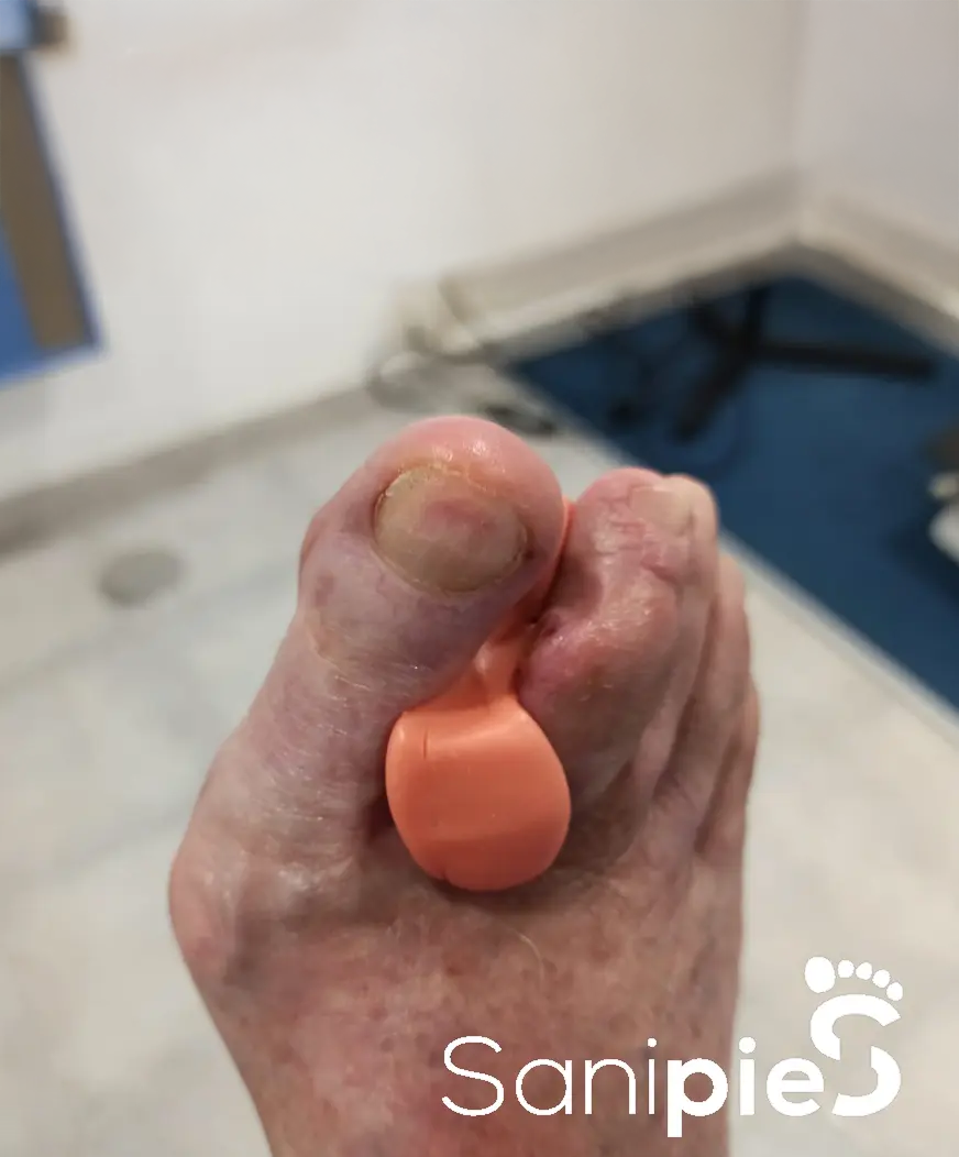 La órtesis de silicona fue clave para la recuperación final, ya que actuó como medida preventiva para evitar la reaparición del heloma y una nueva úlcera.